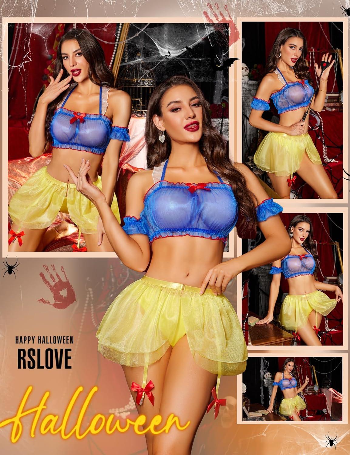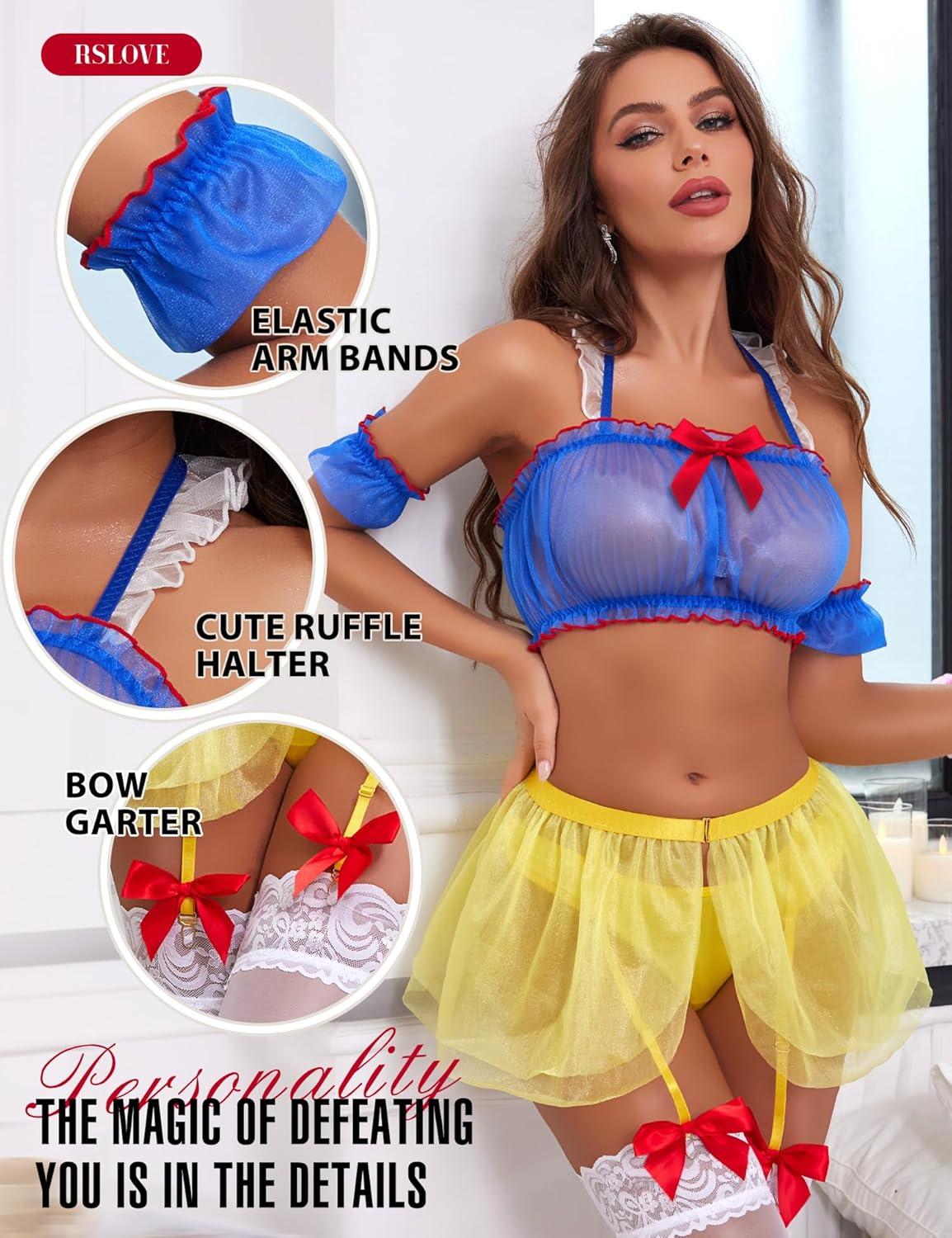 RSLOVE Sexy Womens Lingerie Set – Sexy Cosplay Lingerie Set Princess Lingerie Halloween Costumes Halloween Lingerie Role Play(Blue&yellow)